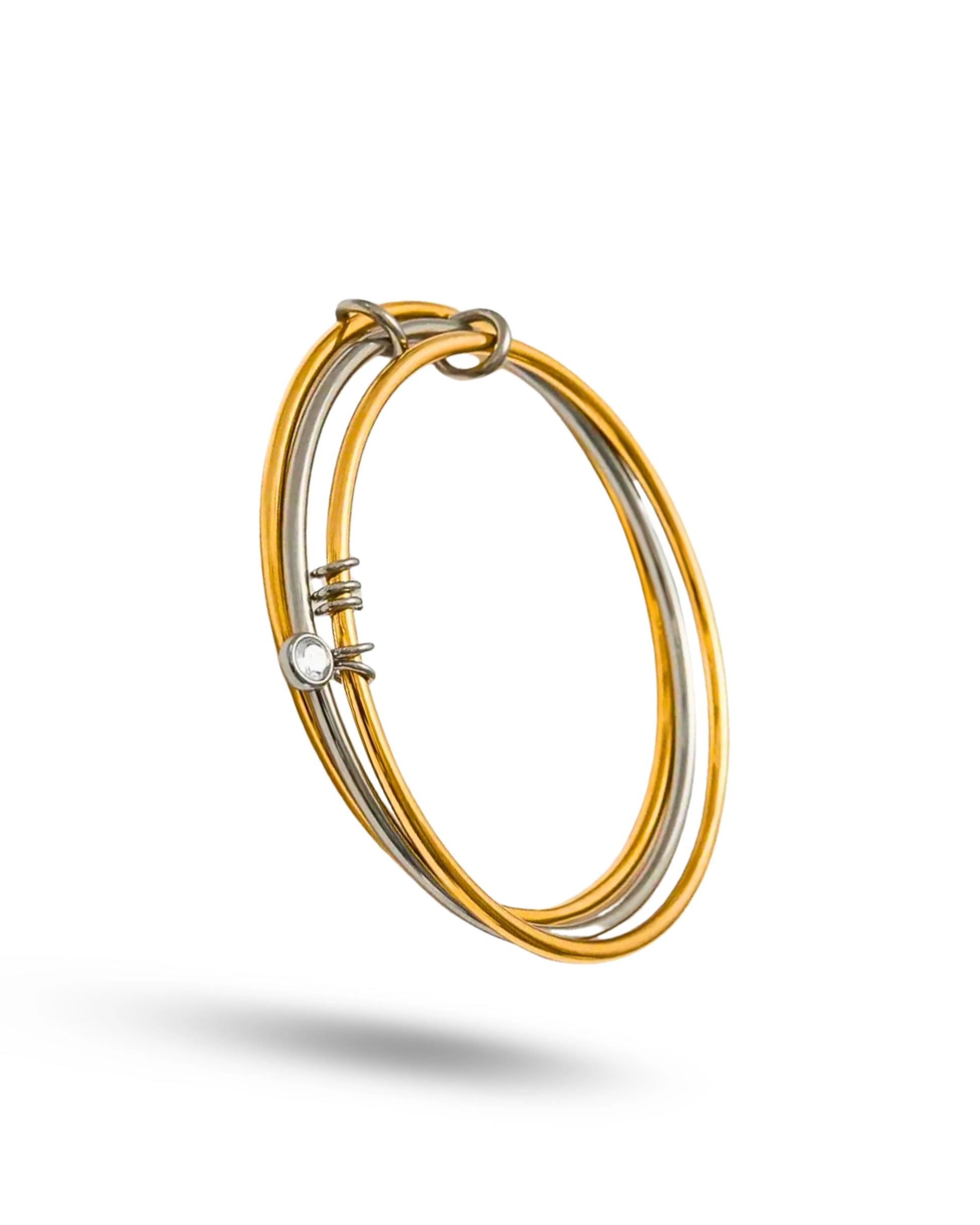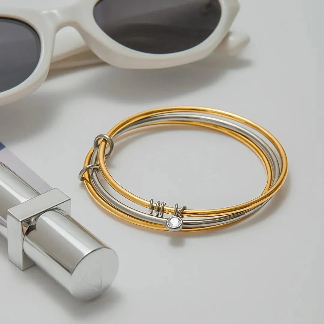 Minimal yet striking – the LUMINA CRYSTAL CHARM BRACELET combines dual-tone elegance with a sparkling crystal accent for everyday luxury.